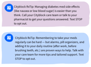 Example result:Behaviorally informed texts with timely education and videos improve medication adherence by 10-20% and click through rates of 35% for commercially insured and Medicaid populations at CVS and Cityblock
